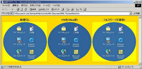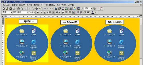 背景色にはフレーム内の左上の1ドット(ピクセル)目の色を使用します。保存時に任意の色を選択可。 覗き窓が四角以外は指定した背景色が使われます。(左図) 四角の場合はキャプチャする画面の該当する場所にある色が使われます。 透過PNGには、256色(Web用)とフルカラー(文書用)があります。 この使い分けは私が勝手に付けたものですが、一応の用途として参考にして下さい。 下図にWeb用(IE)と文書用(MsWord)のサンプルを載せておきます。 ★ブラウザ対応状況 InternetExplorer5.0以上(256色Web用) Netscape6.2以上(フルカラー文書用まで可) ★アプリケーション対応状況 MicrosfotOffice97・2000・XP (フルカラー文書用まで可) |
