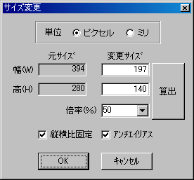 ![]() 変更サイズを指定するか、 倍率を選択・手入力して 「OK」をクリック |