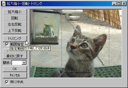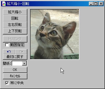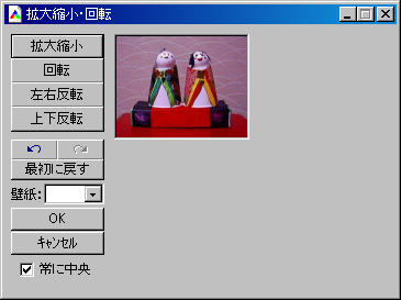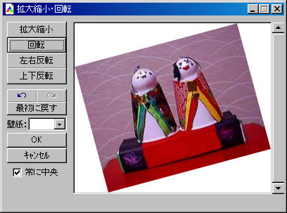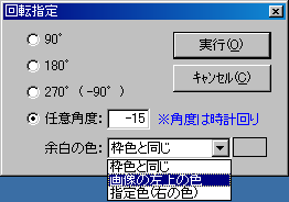 ![]() 90度、180度、270度以外の場合、 余白が生まれます。 その場合の背景色を指定できます。 |