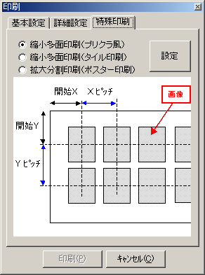●特殊印刷 縮小多面印刷 : プリクラ風とタイル印刷 拡大分割印刷 : 複数の用紙を使って拡大印刷 |